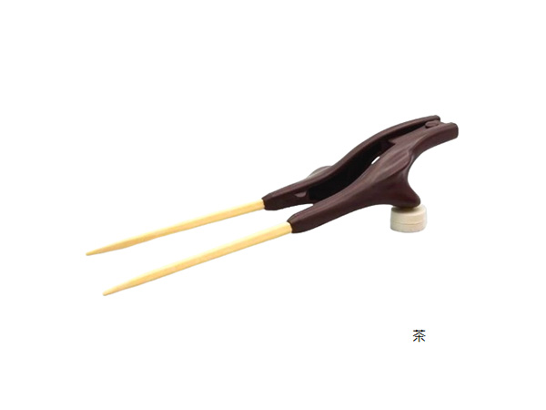 指の機能が低下している方でも、握るような動きができれば、軽い力で箸を開いたり閉じたりして、食べ物をつまむことができます。箸先が自然に合うようにガイドする機構がついているほか、箸先の内側が平面になっているため接触面積が広く、食べ物をがっちりとつかめるよう工夫されています。