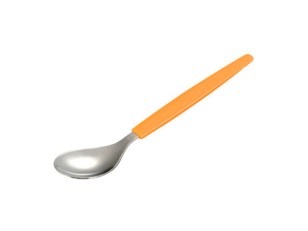 「すくいやすいスプーン」は、スプーンの柄と先端(すくう部分)に角度がついているのが特徴です。握るだけで自然にすくいやすい角度になるため、手や口にフィットしやすくなっています。グリップは滑りにくく、スプーンの先端は口に入れやすい形状で、かつ深めなので、こぼしにくい設計です。