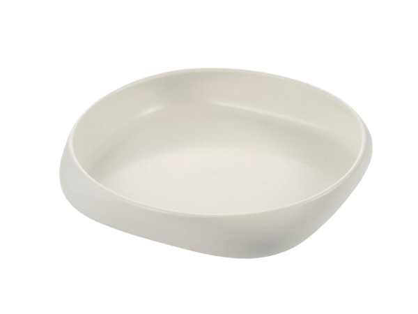 「すくいやすいお皿」は、内側のカーブと角の形状により、食べ物が自然に一か所に集まり、スプーンですくいやすい構造です。