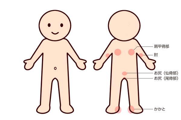 床ずれは、骨が出ていて圧力が集中しやすい部位にできやすいのが特徴です。